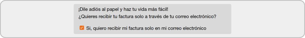 Activa la opción: “Sí, quiero recibir mi factura solo en mi correo electrónico”.